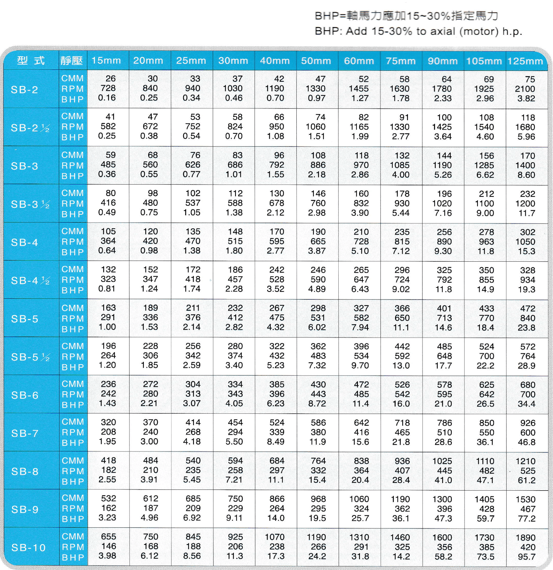 本機依飛機之翼截面原理,應用於風機之設計,有定載之特性不慮馬達超載,效率可達85%,其噪音亦為風機中最低者,適用於乾燥機循環風扇,一般排氣換氣和強制輸送。
